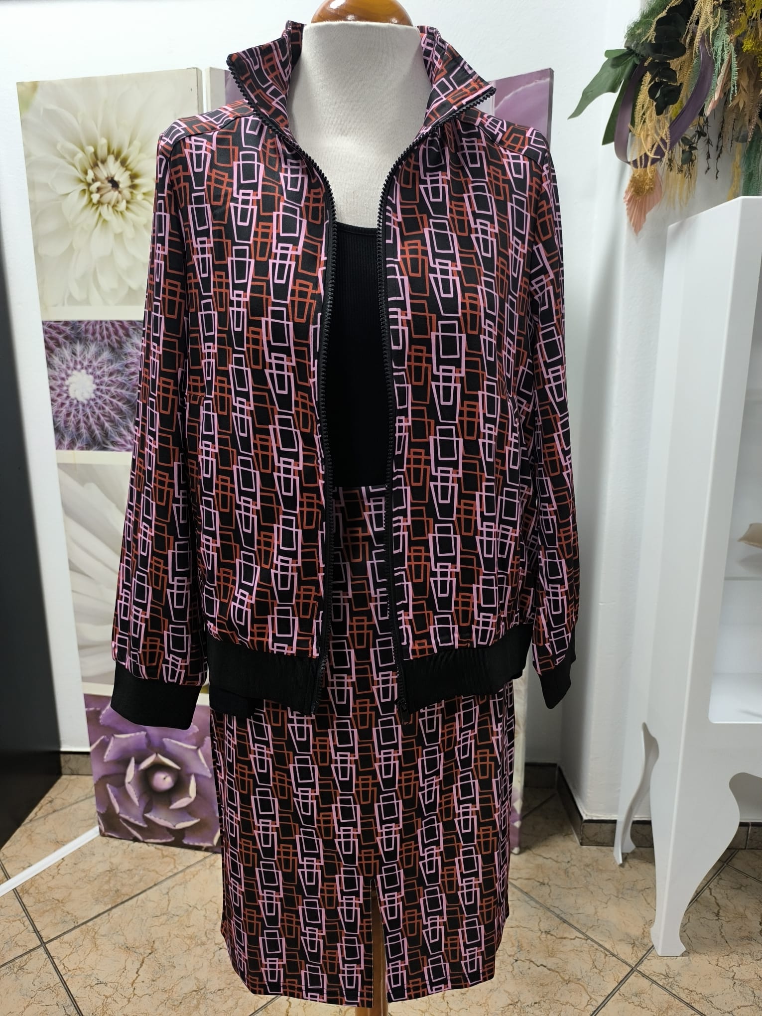 Conjunto Chamarra y Falda Geométricos
